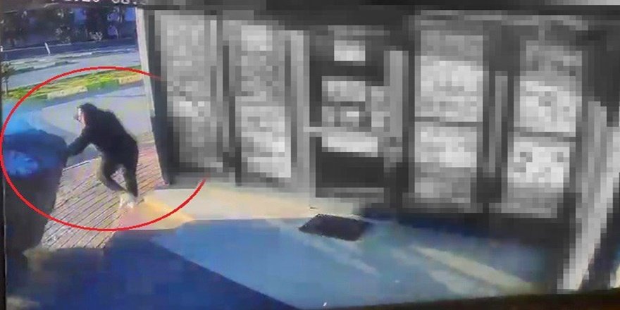 Kontrolden çıkan hafif ticari araç zincir markete doğru savrulurken, kapı önünde oturan bir çalışan son anda ayağa kalkarak aracın altında kalmaktan kurtuldu. O anlar iş yerinin güvenlik kamerasına saniye saniye yansıdı.